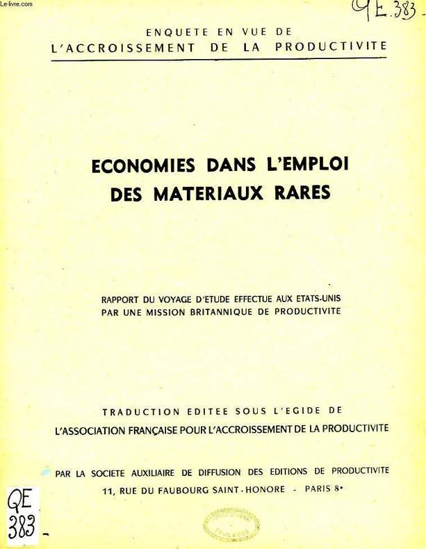 Enquête en vue de l'accroissement de la productivité. Trad. éditée sous l'égide de l'Association Française pour l'accroissement de la productivité. Classification Dewey : 330-Economie