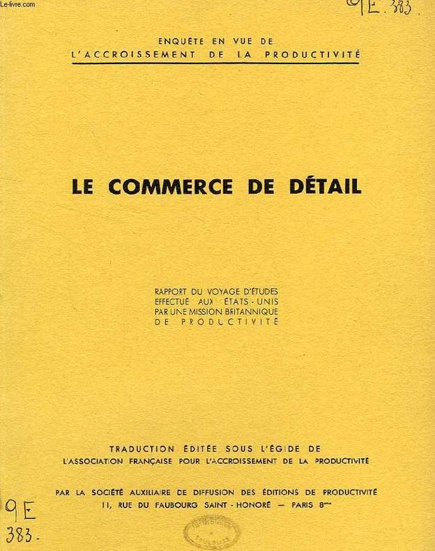 Enquête en vue de l'accroissement de la productivité. Trad. éditée sous l'égide de l'Association Française pour l'accroissement de la productivité. Classification Dewey : 330-Economie