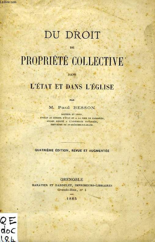 Baratier et Dardelet, Grenoble. 1885. In-8. Broché. Etat du neuf, Couv. légèrement passée, Dos satisfaisant, Quelques rousseurs. Plaquette de 29 pages. Etiquette de code sur le 1er plat. Tampons et annotation de bibliothèque en page de titre.. . . . Classification Dewey : 346.04-Propriétés
