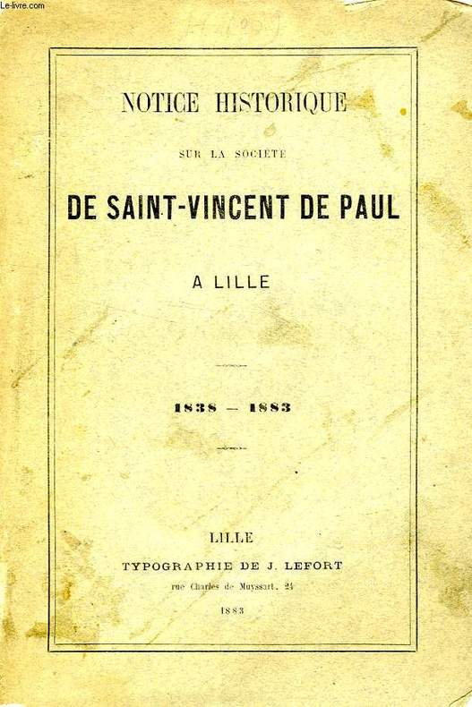 Très rare. C'est en 1838 que fut établie à Lille la première Conférence. Classification Dewey : 270-Histoire et géographie de l'Eglise