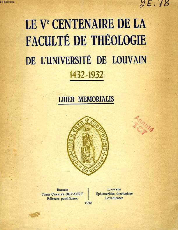 J. Wils, Le doctorat en théologie à l'ancienne Univ. de Loivain. Les porfesseurs de l'ancienne et de la nouvelle Faculté de Théologie (1432-1797, 1834-1932). Les fêtes jubilaires... Classification Dewey : 370-Education