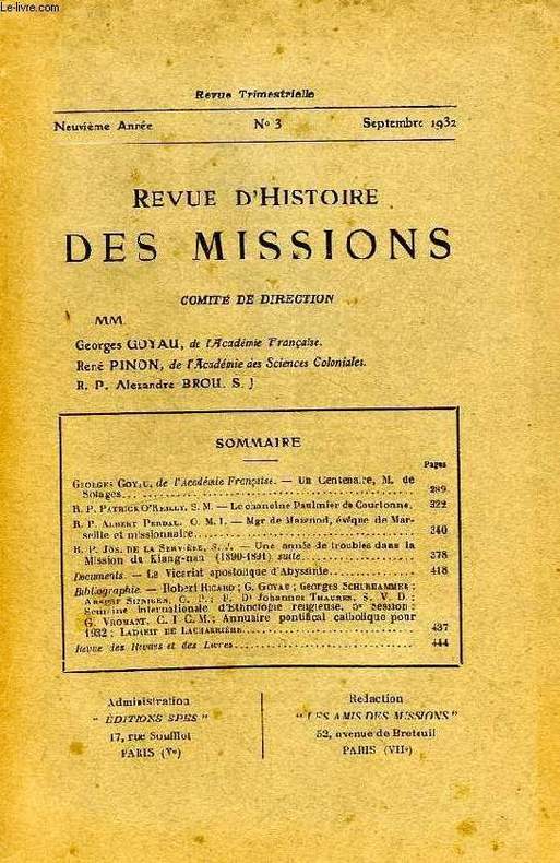 G. Goyau, Un centenaire, M. de Solages. R.P. A. Perbal, Mgr de Mazenod, Evêque de Marseille et missonnaire. P. Jos de la Servière, Une année de troubles dans la mission du Kiang-nan (1890-91) (suite)... Classification Dewey : 270-Histoire et géographie de l'Eglise