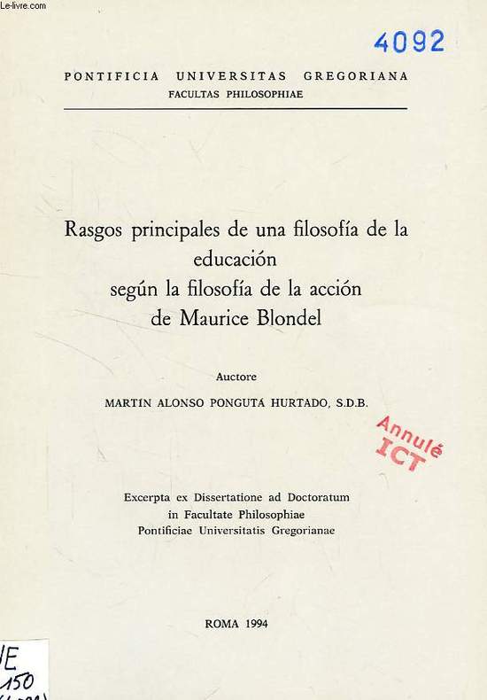 Pontificia Universitas Gregoriana. 1994. In-8. Broché. Bon état, Couv. convenable, Dos satisfaisant, Intérieur frais. 124 pages. Etiquette de code sur le 1er plat. Tampons et annotation de bibliothèque sur le 1er plat et en page de titre. Dos muet.. . . . Classification Dewey : 460-Langues espagnole et portugaise