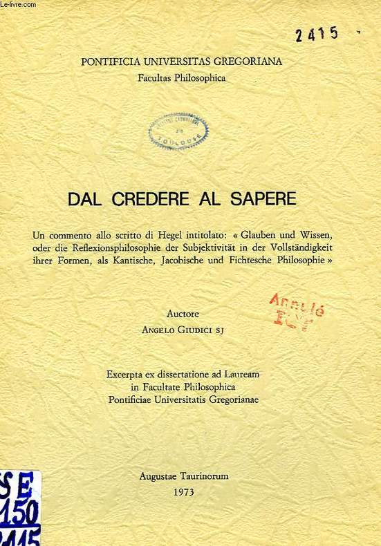 Excerpta ex Dissertatione ad Doctoratum in Facultate Philosophiae Pontificiae Universitatis Gregorianae. Classification Dewey : 450-Italien, roumain, rhéto-romain