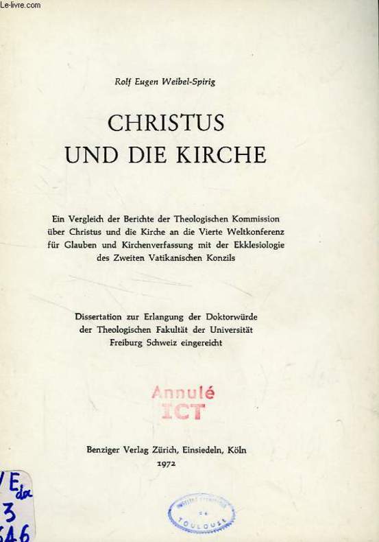 Dissertation zur Erlangung der Doktorwürde der Theologischen Fakultät der Univ. Freiburg in der Schweiz. Ein Vergleich der Berichte der Theologischen Kommission über Christus und die Kirche an die Vierte Weltkonferenz für Glauben und Kirchenverfassung. Classification Dewey : 430-Langues germaniques. Allemand