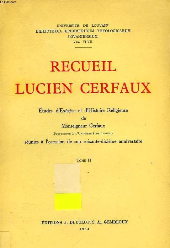 Université de Louvain, Bibliotheca ephemeridum Theologicarum Lovaniensium, Vol. VI-VII. Autour des Evangiles, Théologie. Les Acte des Apôtres et le Christianisme primitif. Horae paulinae... Classification Dewey : 270-Histoire et géographie de l'Eglise