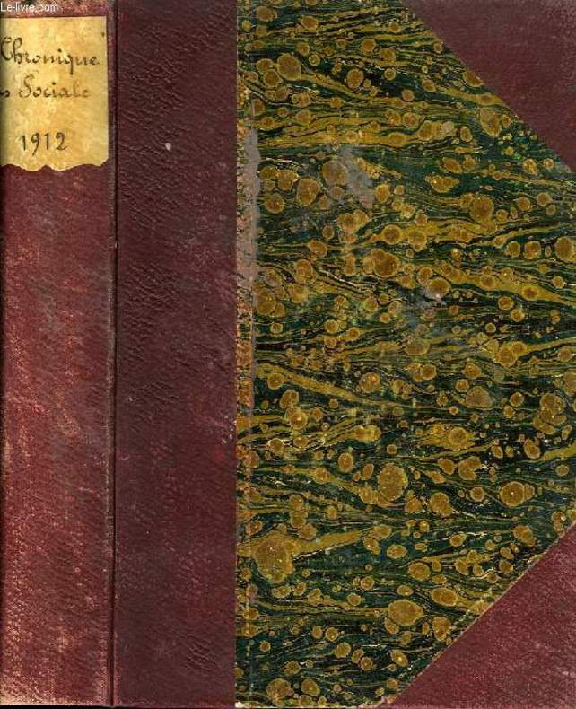 Chronique Sociale de France. 1912. In-8. Relié. Etat d'usage, Couv. légèrement passée, Dos frotté, Mouillures. 450 pages. Etiquette de titre sur le dos. Texte sur 2 colonnes. Annotation et tampon de bibliothèque en page de garde. Tampon de bibliothèque en 1re page. Quelques pliures.. . . . Classification Dewey : 300-SCIENCES SOCIALES