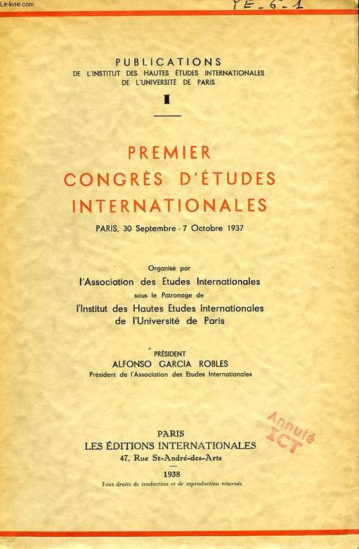 Publications de l'Institut des Hautes Etudes Internationales de l'Univ. de Paris. Prés. : Alfonso Garcia Robles. Tableau d'ensemble. Le progrès humanitaire international. L'organisation économique internationale... Classification Dewey : 320-Science politique