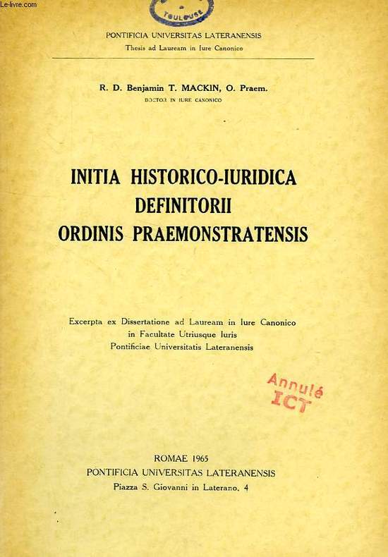 Pontificia Universitas Lateranensis, Theses ad Lauream in Iure Canonico. Excerpta ex Dissertatione ad Lauream. Classification Dewey : 470-Langues italiques. Latin