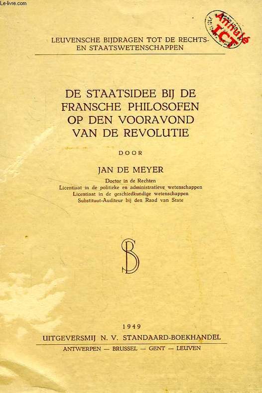 Antwerpen, Standaard-Boekhandel 1949 xix + 368pp., in de reeks "Leuvense bijdragen tot de rechts- en staatswetenschappen", 24cm.