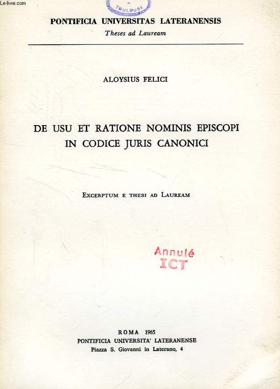 Pontificia Universitas Lateranensis, Theses ad Lauream. Excerptum e Thesi ad Lauream. Classification Dewey : 470-Langues italiques. Latin
