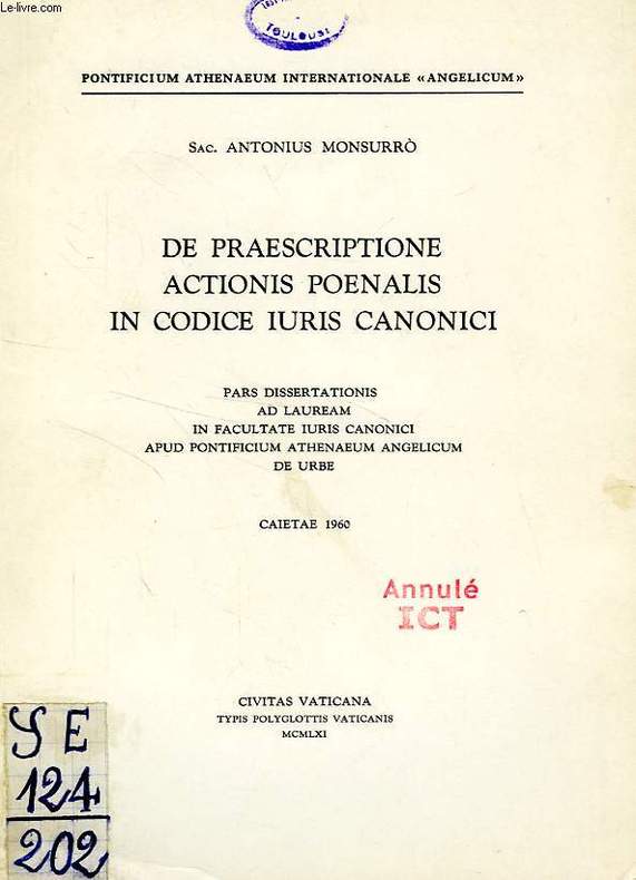 Pontificium Athenaeum Internationale 'Angelicum'. Pars Dissertationis ad Lauream. Classification Dewey : 470-Langues italiques. Latin