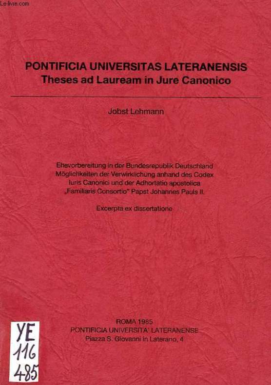 Pontificia Universitas Lateranensis, Theses ad Lauream in Jure Canonico. Excerpta ex Dissertatione. Classification Dewey : 430-Langues germaniques. Allemand