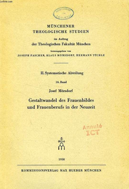 Münchener Theologische Studien, Im Auftrag der Theologischen Fakultät München, Herausg. von Joseph Pascher, Klaus Mörsdorf, Hermann Tüchle. II. Systematische Abteilung, 16. Band. Classification Dewey : 430-Langues germaniques. Allemand