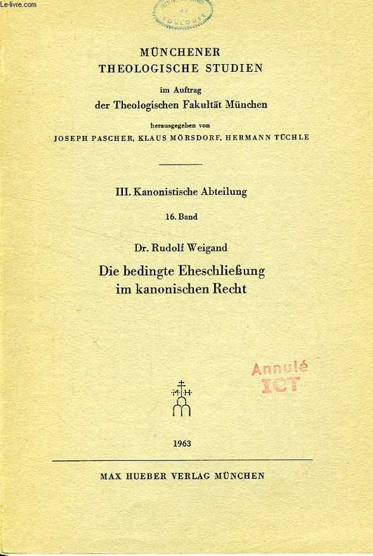 Münchener Theologische Studien, Im Auftrag der Theologischen Fakultät München, Herausg. von Joseph Pascher, Klaus Mörsdorf, Hermann Tüchle. III. Kanonistische Abteilung, 16. Band. Classification Dewey : 430-Langues germaniques. Allemand