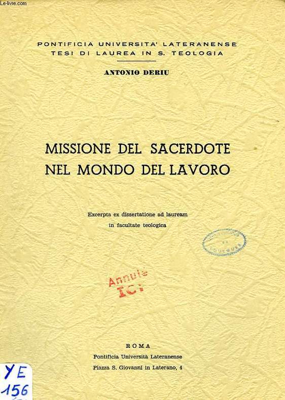 Pontificia Università Lateranense, Tesi di Laurea in S. Teologia. Excerpta ex Dissertatione ad Lauream. Classification Dewey : 450-Italien, roumain, rhéto-romain