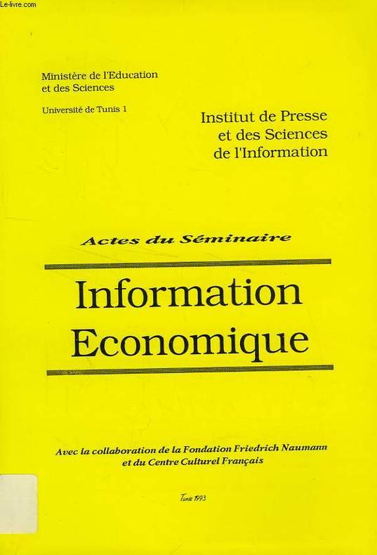 Institut de Presse et des Sciences de l'Information, Tunis. 1993. In-8. Broché. Bon état, Couv. convenable, Dos satisfaisant, Intérieur frais. 132 + 54 pages, dans 2 sens de lecture. Texte en français et en arabe. Etiquette de code sur le dos. Tampon et annotations de bibliothèque en page de titre.. . . . Classification Dewey : 330-Economie