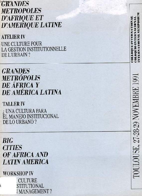 Big Cities of Africa and Latin America, Workshop IV, Which Culture for Institutional Urban management ? Classification Dewey : 711-Urbanisme. Aménagement du territoire