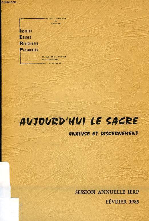 IERP. 1985. In-8. Broché. Etat d'usage, Couv. convenable, Dos satisfaisant, Intérieur frais. 96 pages - texte dactylographié - 1 annotation sur le 1er plat.. . . . Classification Dewey : 200-RELIGION