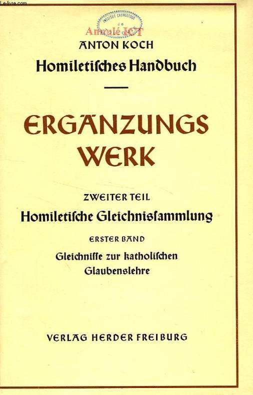 Erster Band, Gleichnisse zur Katholischen Glaubenslehre (Teil I-IV des Lehr- und Quellenwerkes). Classification Dewey : 430-Langues germaniques. Allemand