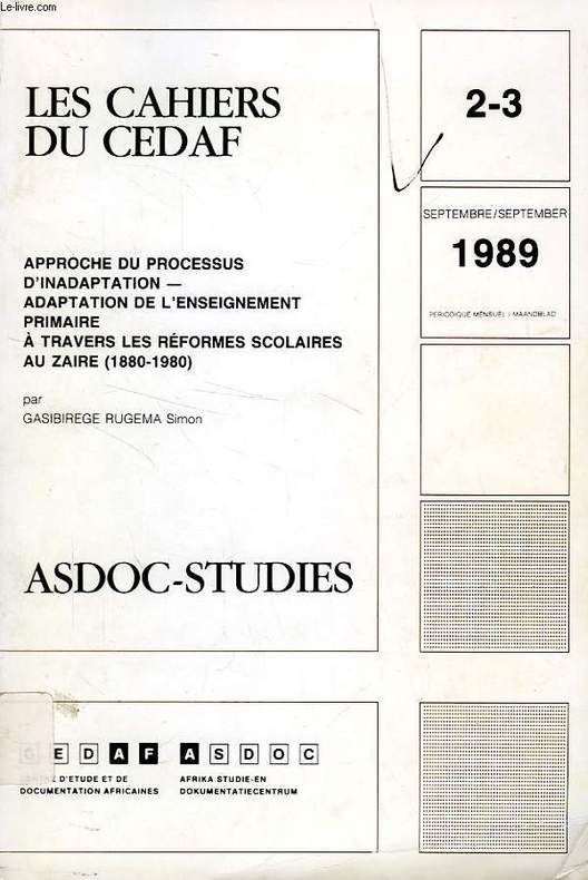 CEDAF - ASDOC. 1989. In-8. Broché. Etat d'usage, Tâchée, Dos satisfaisant, Intérieur acceptable. 244 pages. Etiquette de code sur le dos. Tampon et annotations de bibliothèque en 1re page.. . . . Classification Dewey : 967-Afrique centrale