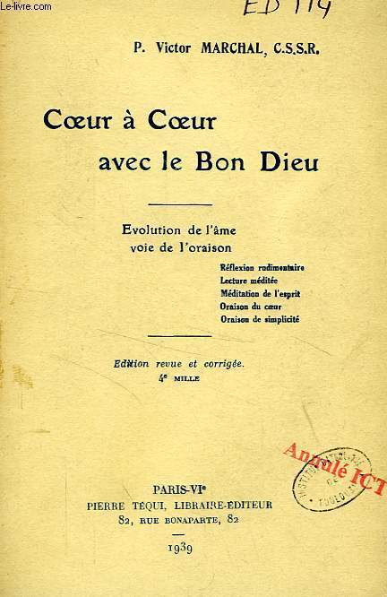 Pierre Téqui. 1939. In-12. Broché. Bon état, Couv. convenable, Dos satisfaisant, Intérieur acceptable. 205 pages. Etiquette de code sur le dos. Tampons et annotation de bibliothèque sur le 1er plat et en page de titre.. . . . Classification Dewey : 248-Vie chrétienne et méditations