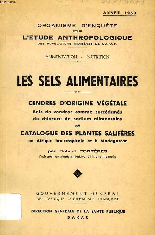Gouvernement Général de l'AOF, Direction Générale de la Santé Publique, Dakar. 1950. In-8. Broché. Bon état, Couv. convenable, Dos satisfaisant, Intérieur frais. 77 pages. Illustré d'une carte et de nombreuses photos en noir et blanc sur planches dépliables. Etiquette de code sur le dos. Tampon et annotations de bibliothèque en page de titre.. . . . Classification Dewey : 641-Nourriture et boisson
