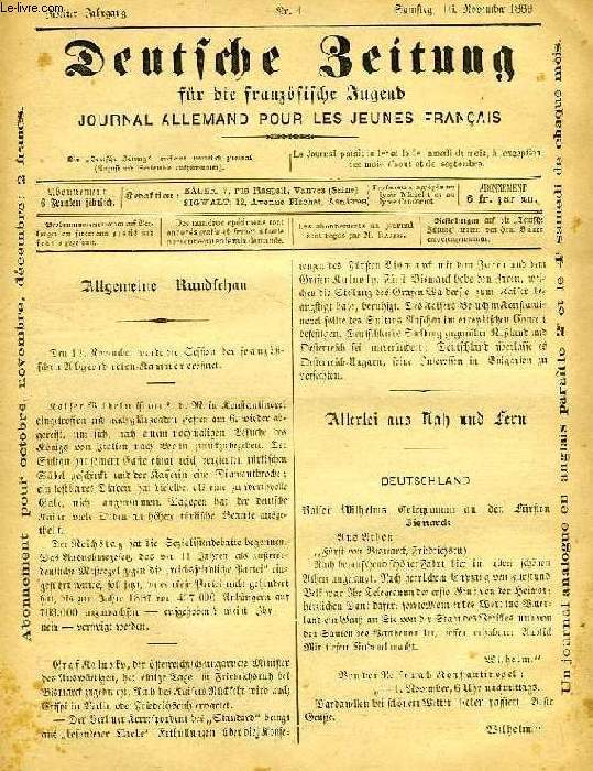 Hachette. 1889-1911. In-4. En feuillets. A relier, Livré sans Couverture, Dos satisfaisant, Déchirures. 28 numéros d'env. 10 pages chacun. Texte sur 2 colonnes en allemand et en caractères gothiques. Pages légèrement jaunies.. . . . Classification Dewey : 430-Langues germaniques. Allemand