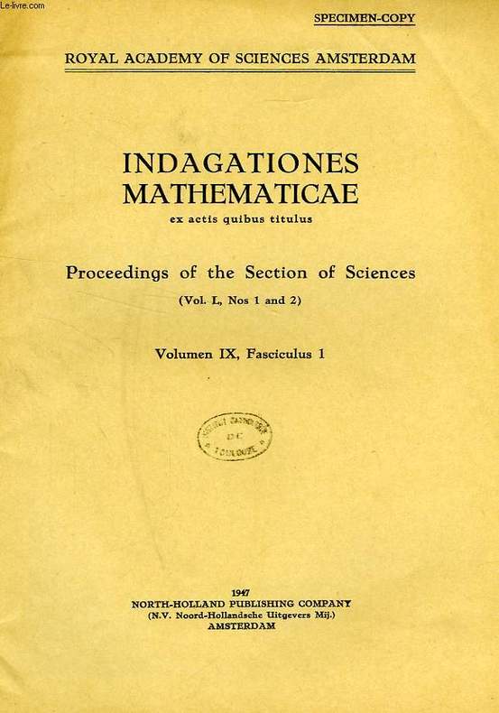 North-Holland Publishing Co.. 1947. In-4. Broché. Bon état, Couv. convenable, Dos satisfaisant, Intérieur frais. Plaquette d'env. 20 pages. Texte en français et en anglais. Tampons et annotations de bibliothèque sur le 1er plat et en page de titre.. . . . Classification Dewey : 510-Mathématiques