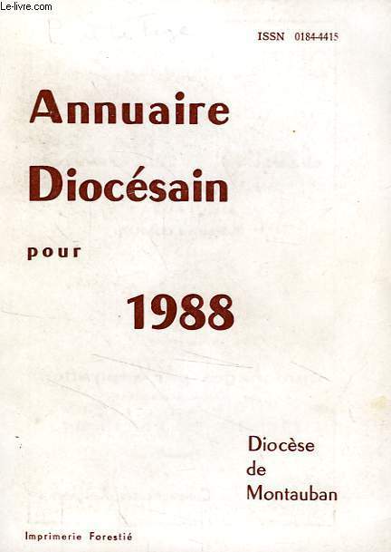 Diocèse de Montauban. 1988. In-16. Broché. Bon état, Couv. convenable, Dos satisfaisant, Intérieur frais. 158 pages.. . . . Classification Dewey : 270-Histoire et géographie de l'Eglise