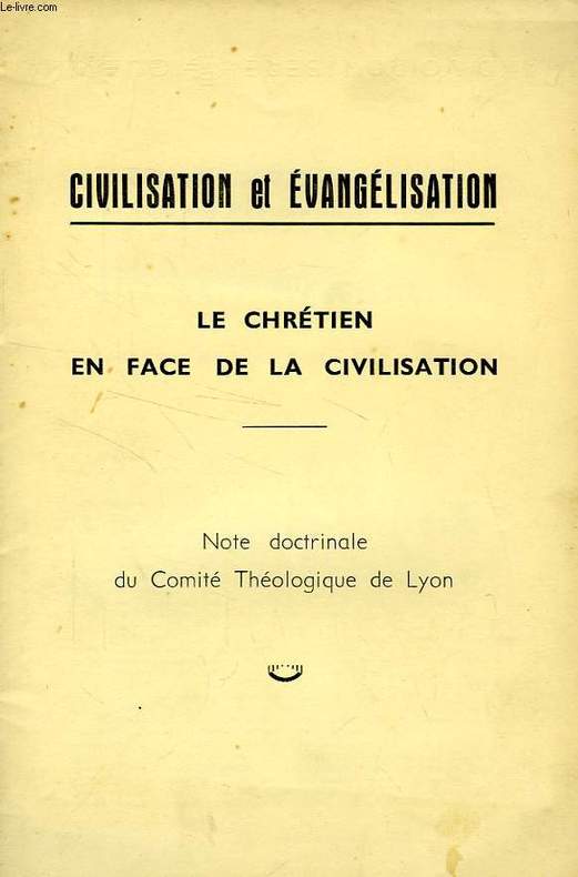 Note doctrinale du Comité Théologique de Lyon. Classification Dewey : 210-Philosophie et théorie