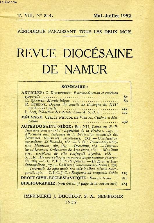 G. Koerperich, Extrême-Onction et guérison corporelle. E. Ranwez, morale laïque. R. Etienne, Doyens du concile de bastogne du XIIe au XVIIIe siècle... Classification Dewey : 270-Histoire et géographie de l'Eglise