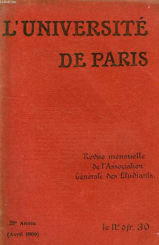 Association Générale des Etudiants de Paris. 1909. In-8. Broché. Bon état, Couv. convenable, Dos satisfaisant, Intérieur frais. 21 pages.. . . . Classification Dewey : 370-Education