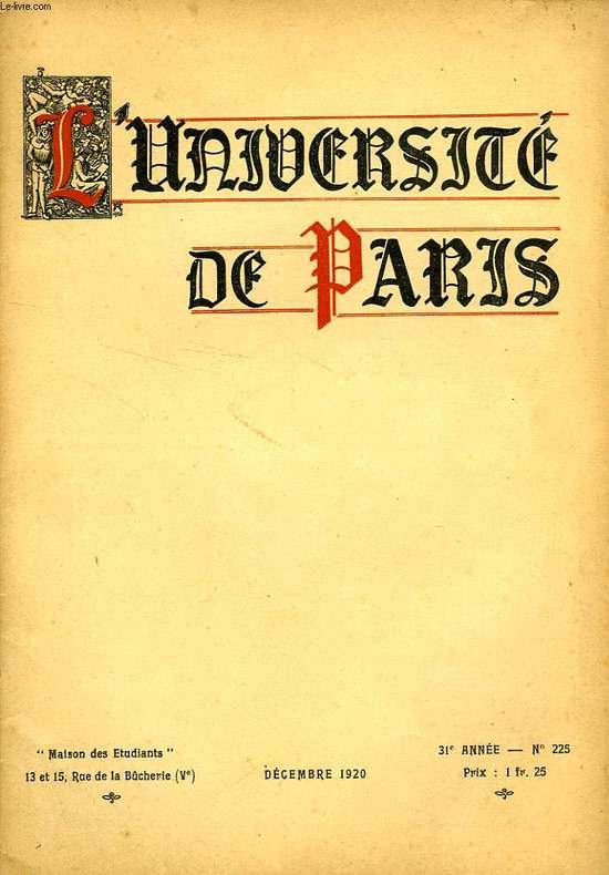 Association Générale des Etudiants de Paris. 1920. In-8. Broché. Bon état, Couv. convenable, Dos satisfaisant, Intérieur acceptable. 32 pages. Illustré de dessins en noir et blanc dans et hors texte. Texte sur 2 colonnes.. . . . Classification Dewey : 370-Education