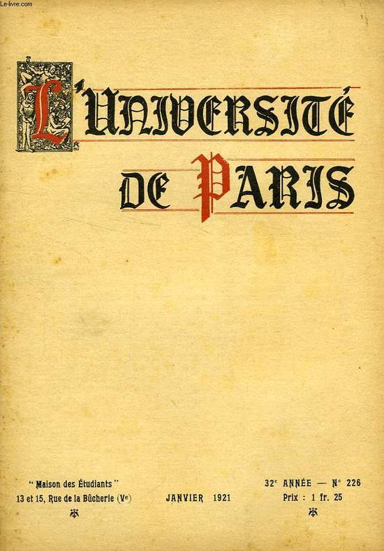 Association Générale des Etudiants de Paris. 1921. In-8. Broché. Bon état, Couv. convenable, Dos satisfaisant, Intérieur acceptable. 32 pages. Illustré de dessins en noir et blanc dans et hors texte. Texte sur 2 colonnes.. . . . Classification Dewey : 370-Education