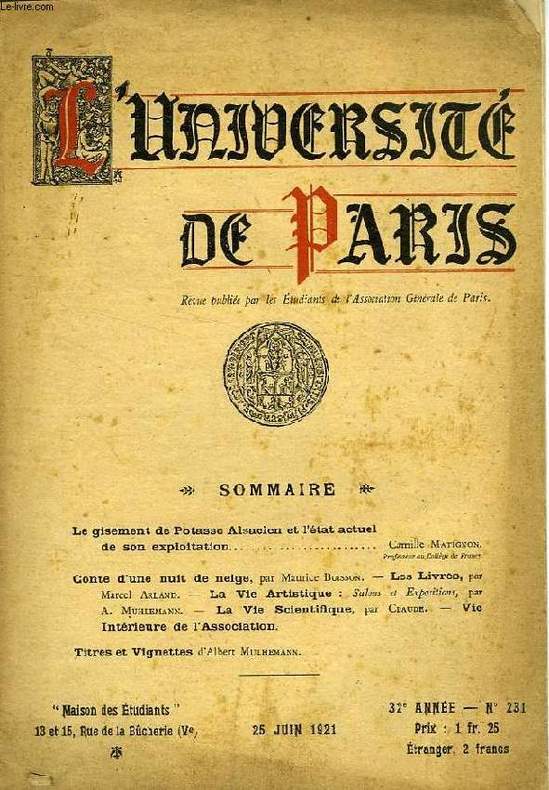 Rare. Le gisement de potasse alsacien et l'état actuel de son exploitation, Camille Matignon. Conte d'une nuit de neige, Maurice Buisson... Classification Dewey : 370-Education