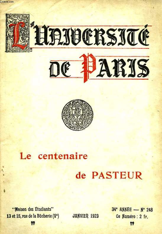 Rare. Pasteur, Père de l'Hygiène et de la Chirurgie modernes, Thibon de Courtry. Pasteur, Président d'honneur de l'A., Discours de M. Schmidt. Centenaire Pasteur. A la Sorbonne, Disocurs. Nos camarades des Universités de Belgique à Paris... Classification Dewey : 370-Education