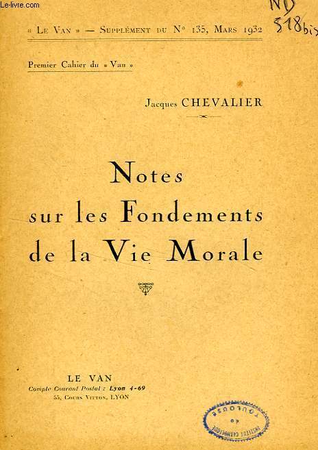 Le Van. 1932. In-12. Broché. Bon état, Couv. convenable, Dos satisfaisant, Intérieur frais. 35 pages. Tampons et annotations de bibliothèque sur le 1er plat et en 1re page.. . . . Classification Dewey : 100-PHILOSOPHIE ET DISCIPLINES CONNEXES