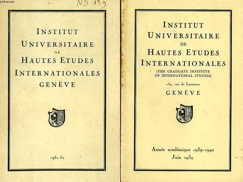 I.U.H.E.I, Genève. 1931-1939. In-8. Broché. Bon état, Couv. légèrement passée, Dos satisfaisant, Rousseurs. 7 plaquettes d'env. 10 pages chacune.. . . . Classification Dewey : 370-Education