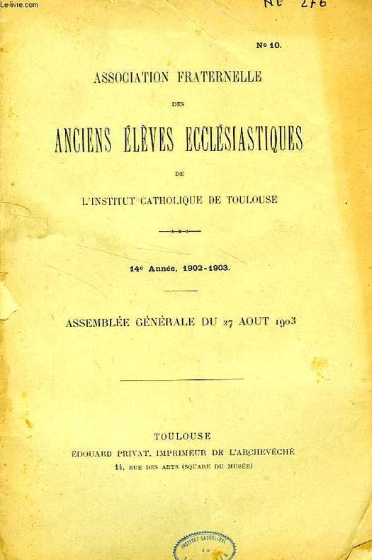 De la 14e année, 1902-1903, Assemblée Générale du 27 août 1903, à la 43e année, 1932, Assemblée Générale du 16 mai 1932. 1903, 1904, 1905, 1906, 1908, 1909, 1910, 1911, 1912, 1920, 1922, 1923, 1930, 1932. Classification Dewey : 370-Education