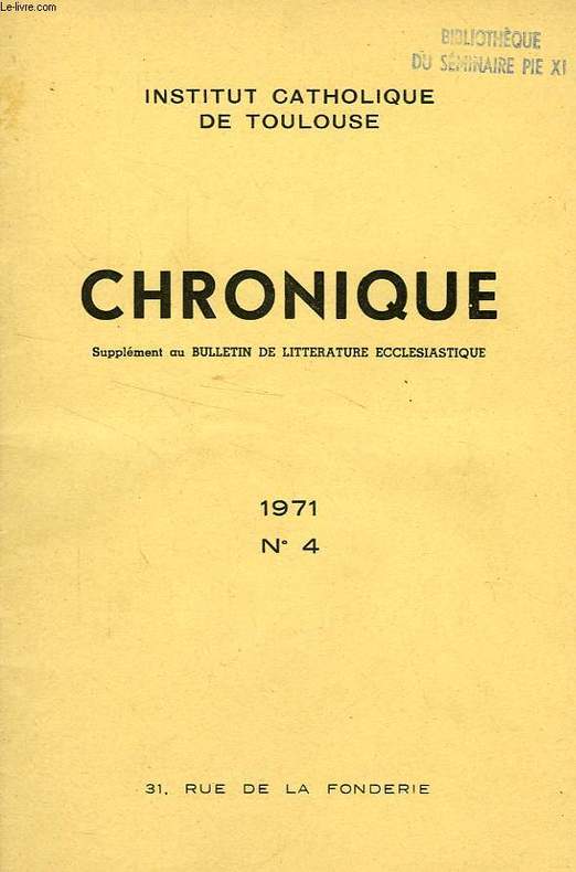 Publié par l'Institut Catholique de Toulouse. Programme. La connaissance de soi, Conférence du P. A. Etcheverry. La Sophrologie, Conf. du Dr Beranger... Classification Dewey : 270-Histoire et géographie de l'Eglise