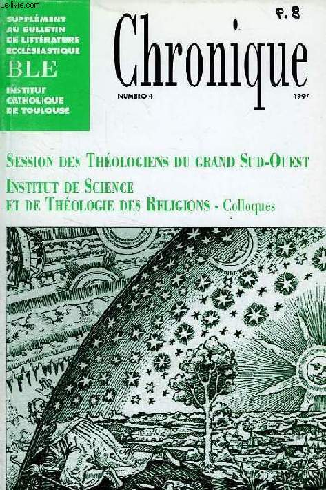Publié par l'Institut Catholique de Toulouse. Session des Théologiens du Grand Sud-Ouest. Quelques questions épistémologiques touchant le rapport 'science et foi', Gérard Soulié. Institut de Science et de Théologie des Religions, Colloques... Classification Dewey : 210-Philosophie et théorie