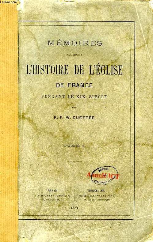 Fischbacher, Paris - Félix Callewaert Père, Bruxelles. 1881. In-8. Broché. Etat d'usage, Plats abîmés, Dos satisfaisant, Intérieur acceptable. 481 pages. Papier muet et étiquette de code collés sur le dos. Tampons et annotations de bibliothèque sur le 1er plat et en page de titre. Manques sur les bords du 2e plat.. . . . Classification Dewey : 270-Histoire et géographie de l'Eglise