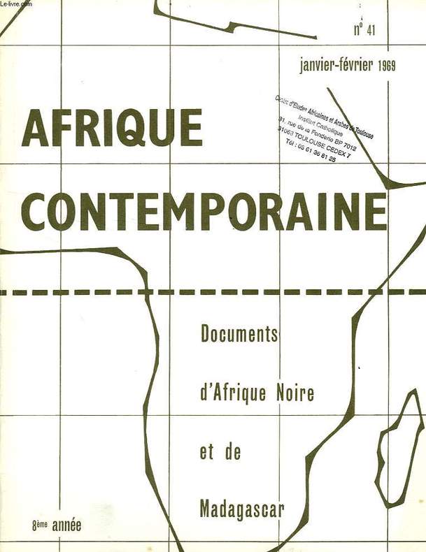 La Documentation Française. 1969. In-4. Broché. Bon état, Couv. convenable, Dos satisfaisant, Intérieur frais. 47 pages. Texte sur 2 colonnes. Tampons de bibliothèque sur le 1er plat et en 1re page.. . . . Classification Dewey : 960-Histoire générale de l'Afrique