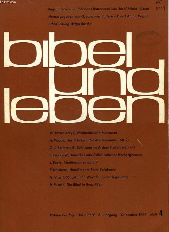 W. Nastainczyk, Weihnachtliche Menschen. A. Vögtle, Das Schicksal des Messiaskindes (Mt 2). E. Pax o.f.m., Jüdisches und frühchristliches Herbergswesen... Classification Dewey : 430-Langues germaniques. Allemand