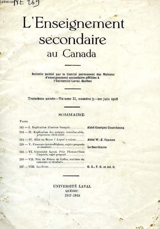 Explication d'un texte de Lamartine, Le Crucifix, Abbé Georges Courchesne. Elio ou Bryce ?, Lequel a raison, Abbé W.E. Cannon... Classification Dewey : 370-Education