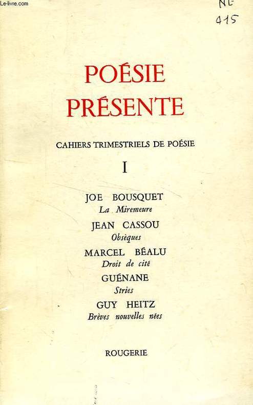 Joe Bousuet, La Miremeure. Jean Cassou, Obsèques. Marcel Béalu, Droit de Cité... Classification Dewey : 841-Poésie