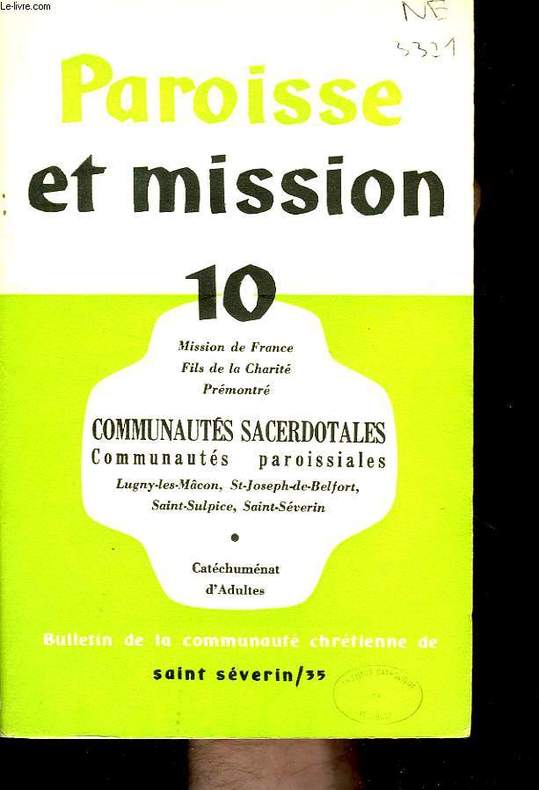 Mission de France, Fils de la Charité, Prémontré. Communautés sacerdotales, Communautés paroissiales, Lugny-les-Mâcon... Classification Dewey : 270-Histoire et géographie de l'Eglise