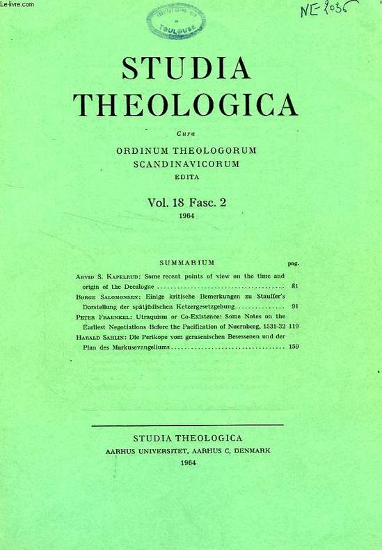 Arvid S. Kapelrud, Some recent points of view on the time and origin of the Decalogue. Harald Sahlin, Die Perikope vom gerasenischen Besessenen und der Plan des Markusevangeliums... Classification Dewey : 230-Christianisme. Théologie chrétienne