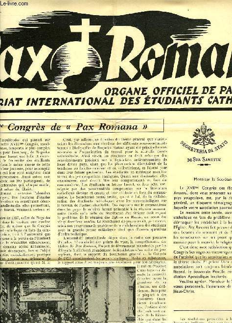Le XVIIe Congrès de 'Pax Romana'. Une nouvelle gerbe de témoignages de sympathie. 20 ans après ! Dr J.J. Rückl... Classification Dewey : 270-Histoire et géographie de l'Eglise
